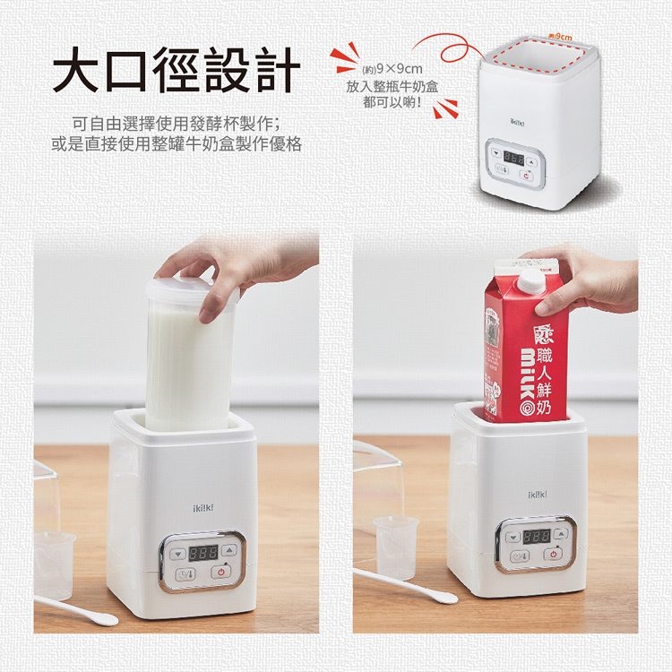 ◆ 大口徑設計,依喜好選擇發酵杯或市售牛奶盒製作