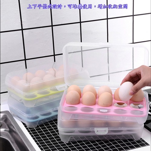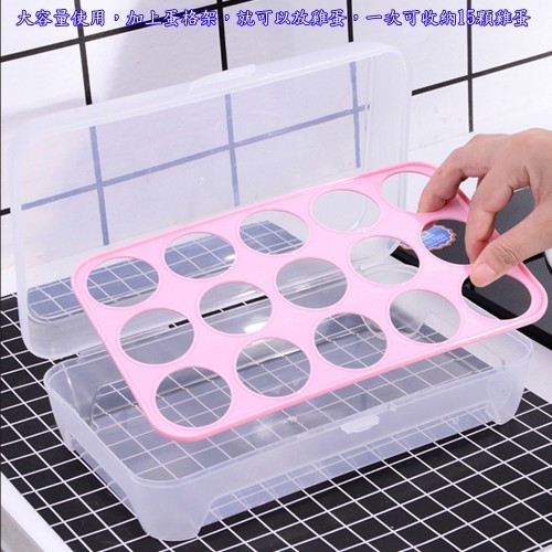 ■大容量使用,加上蛋格架,就可以放雞蛋,一次可收納15顆雞蛋。