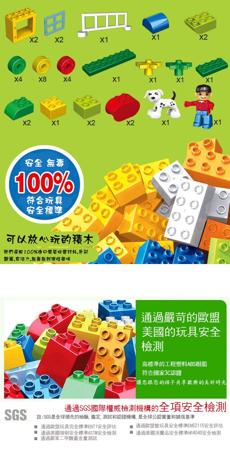 備註:樂高式積木,與樂高得寶系列 大顆粒相容