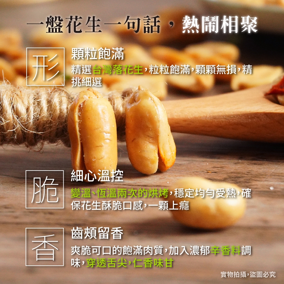 成份:新鮮花生仁、鹽(氯化鈉)、蒜頭、青蔥、辣椒、胡椒、精製棕櫚油、調味料味精(L-麩酸鈉)