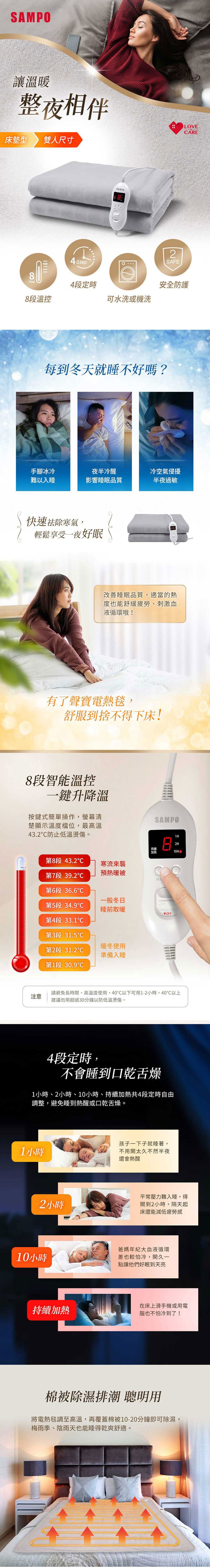 ◆8段溫度檔位自由調整,恆溫設計熱傳導迅速均勻,溫暖舒適。