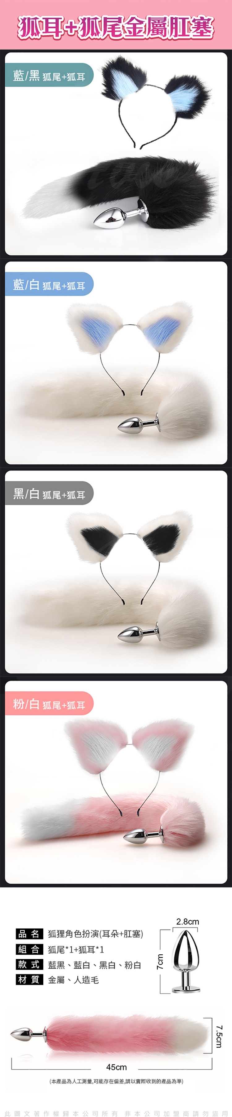 .商品內容:妖豔小狐狸角色扮演 毛絨耳朵+不鏽鋼肛塞尾巴 狐狸尾