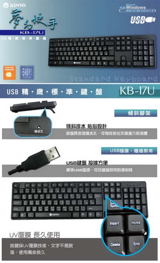 【KINYO】USB精緻標準鍵盤(KB-17U)