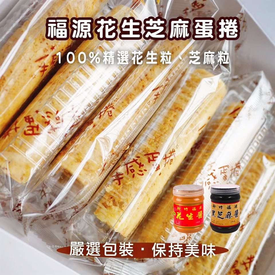 「新竹福源花生醬蛋捲」和「新竹福源花生醬芝麻蛋捲」是新竹必買人氣伴手禮,