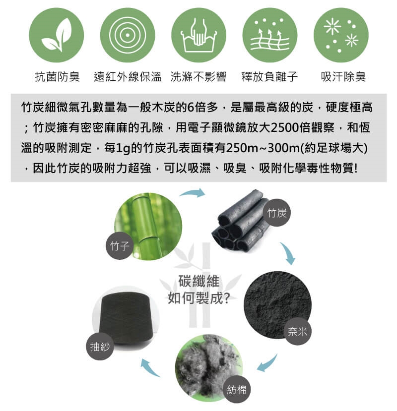 耐水洗→ 竹炭纖維功能可持續不受水洗影響