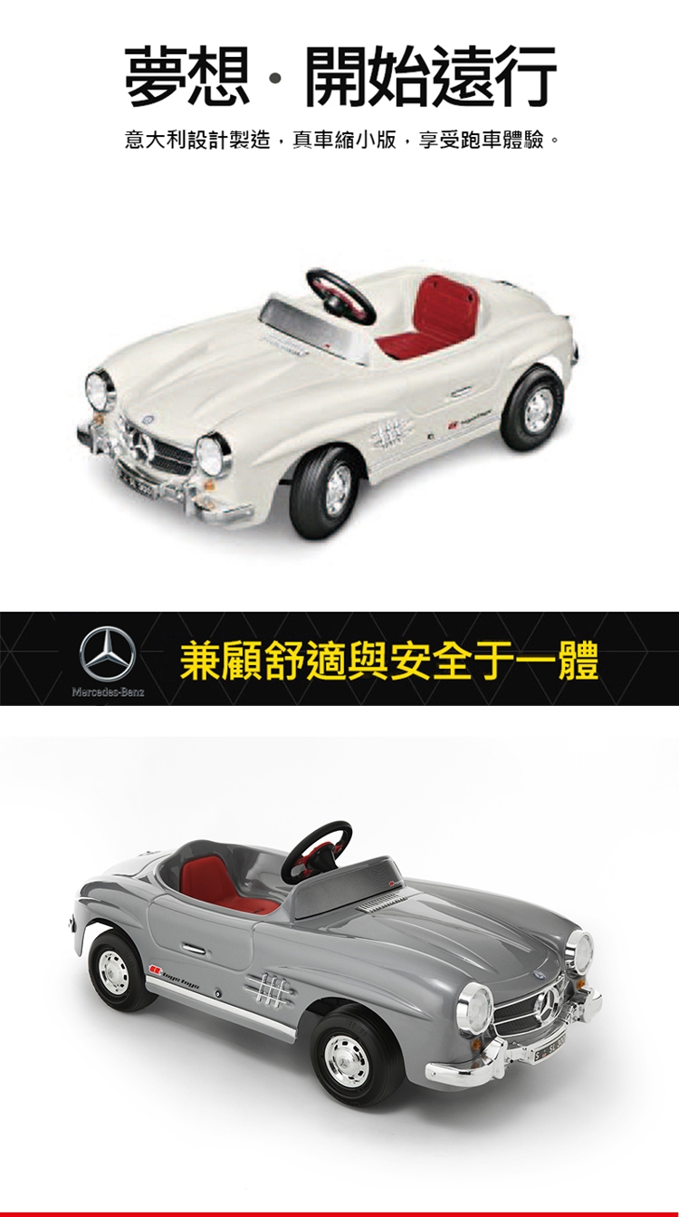 商品詳細介紹 使用方法說明 - 注意事項 ★BENZ 賓士 官方原廠精品,全台獨家,義大利原裝進口 ★適用年齡:3歲~30公斤,小朋友乘玩時請大人陪同在旁 ★按照原車縮小比例,帥氣車型與豪華座椅,寬敞駕駛空間。