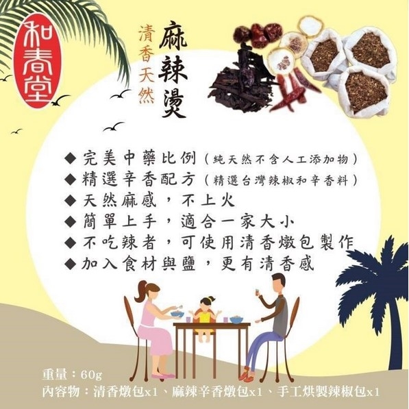 包裝內容物:(清香燉包X1+麻辣辛香燉包X1+手工烘製辣椒包X1)/袋