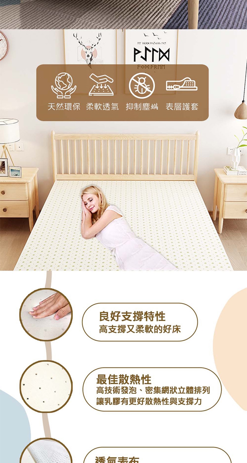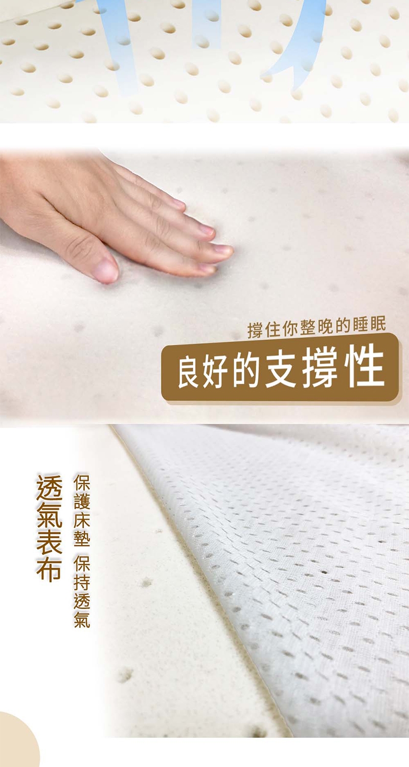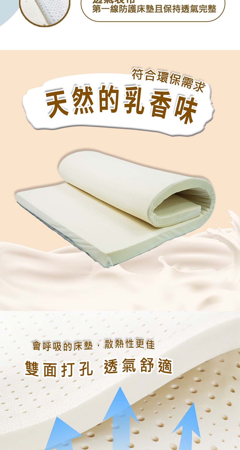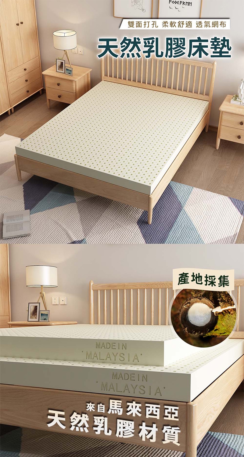 選用馬來西亞乳膠,天然健康且帶有一股乳香味,可自然分解對環境無害。