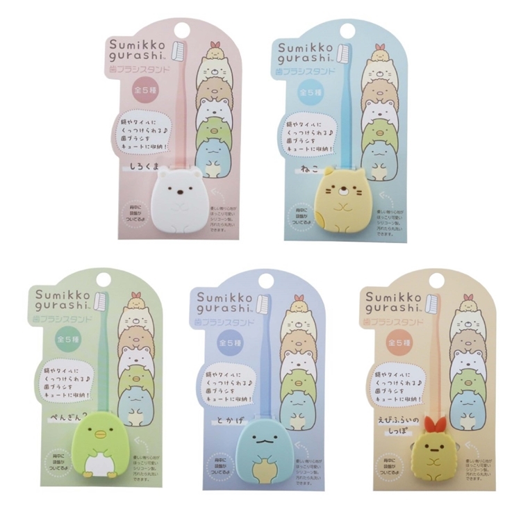 ●【品名】日本限定SHOBIDO粧美堂角落生物造型牙刷架牙刷盒SK1946牙刷支架(吸盤式)白熊/貓咪/河童/蜥蜴/蝦尾巴-角落小夥伴牆角生物