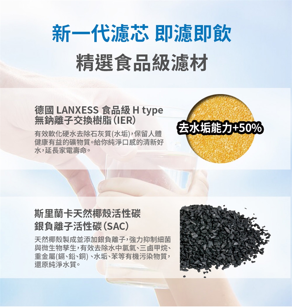 本產品僅用於自來水,請勿使用於水質不明或受微生物汙染之水源。