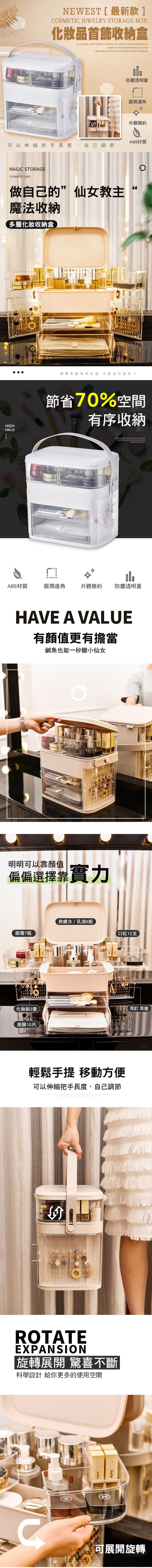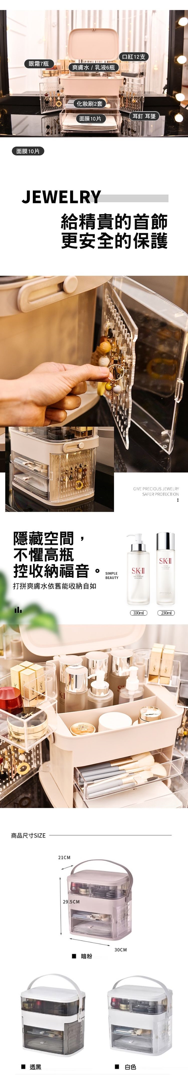今年 最新款化妝品首飾收納盒 清楚分類化妝用具 不讓化妝桌雜亂、使用化妝箱收納各式各樣的化妝品,讓桌面更加整潔