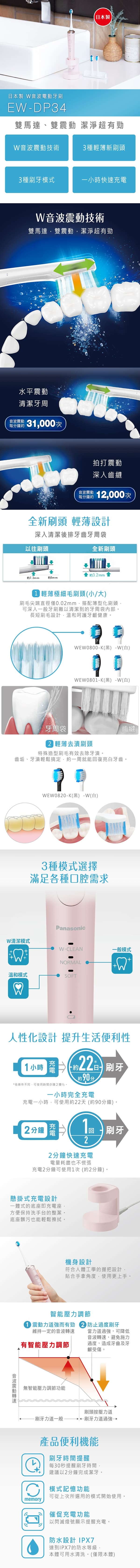Panasonic 國際牌 無線音波震動國際電壓充電型電動牙刷 EW-DP34