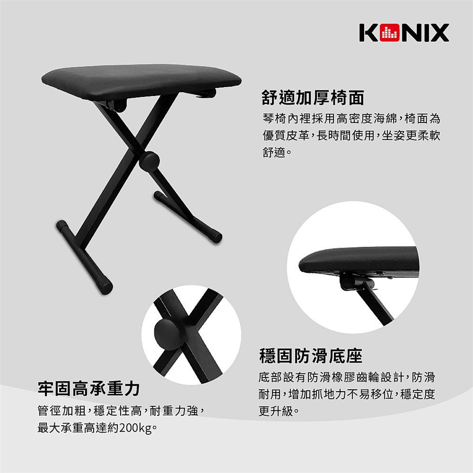 KONIX電鋼琴椅管徑加粗,穩定性高,耐重力強,最大承重高達約200kg。