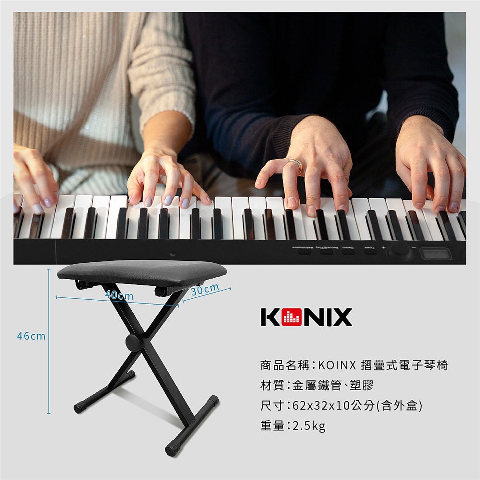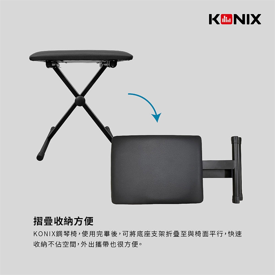 KONIX鋼琴椅,使用完畢後,可將底座支架折疊至與椅面平行,快速收納不佔空間,外出攜帶也很方便。