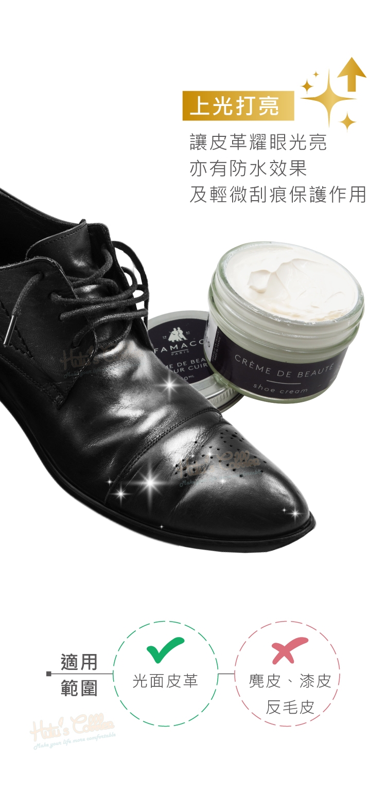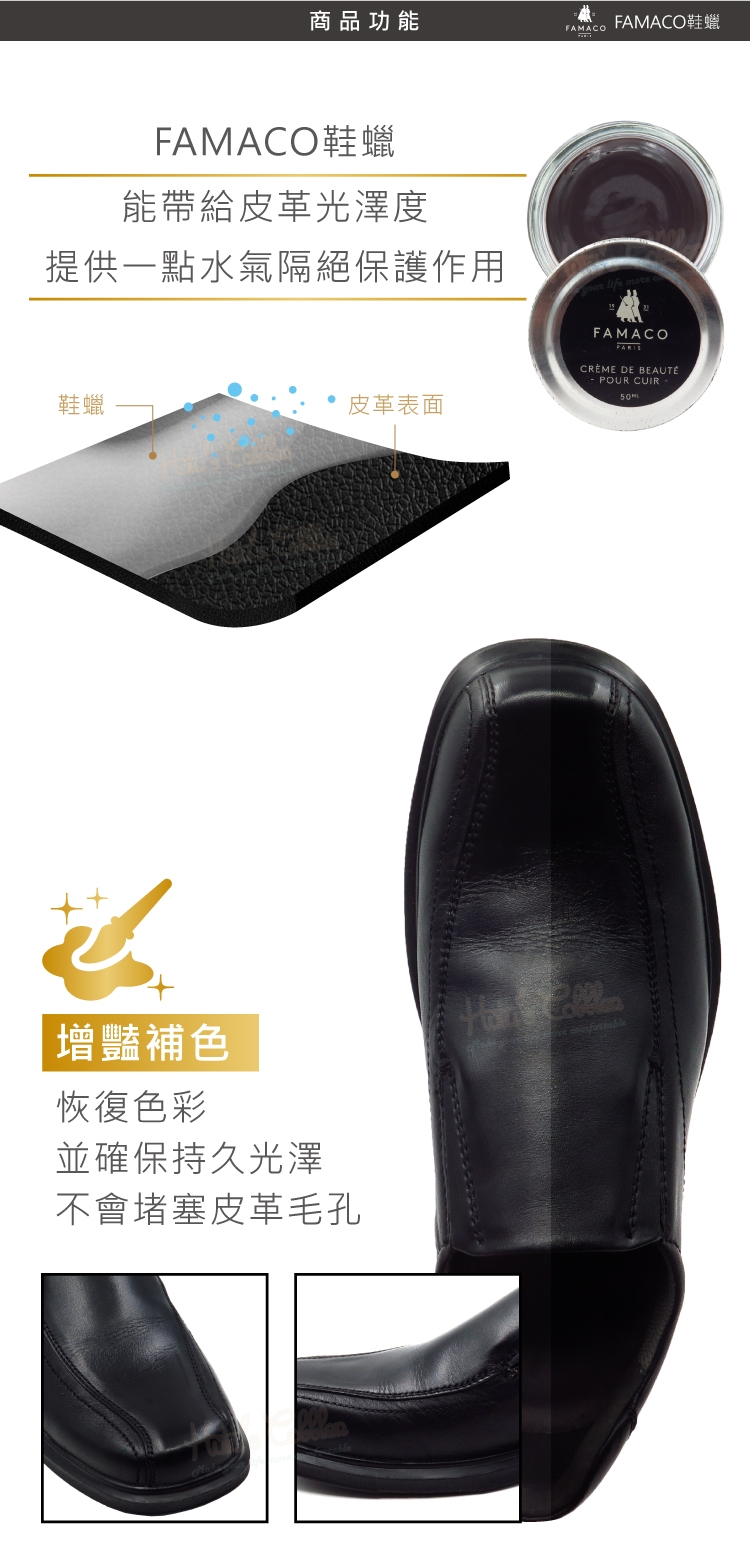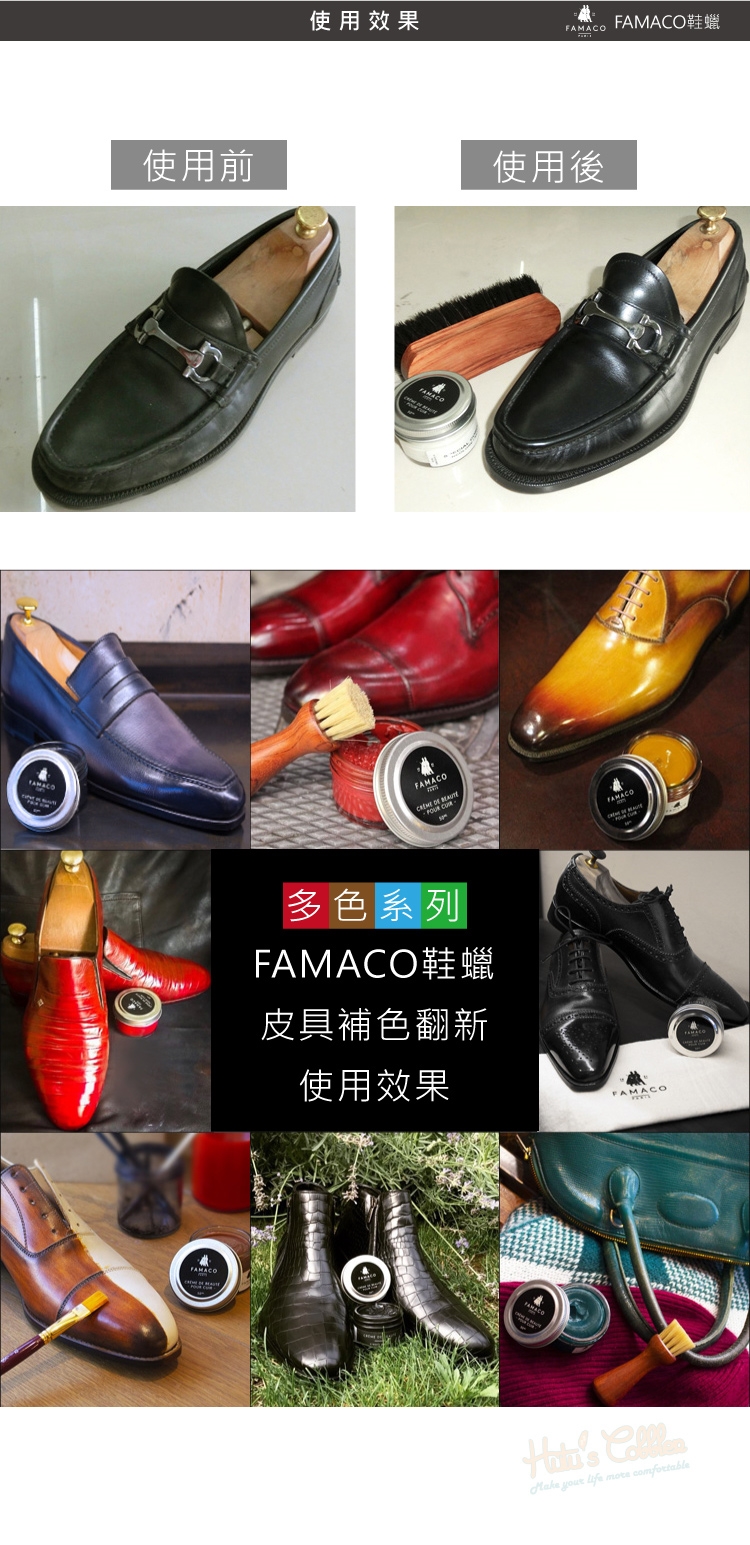 FAMACO鞋蠟能帶給皮革光澤度,提供一點水氣隔絕保護作用