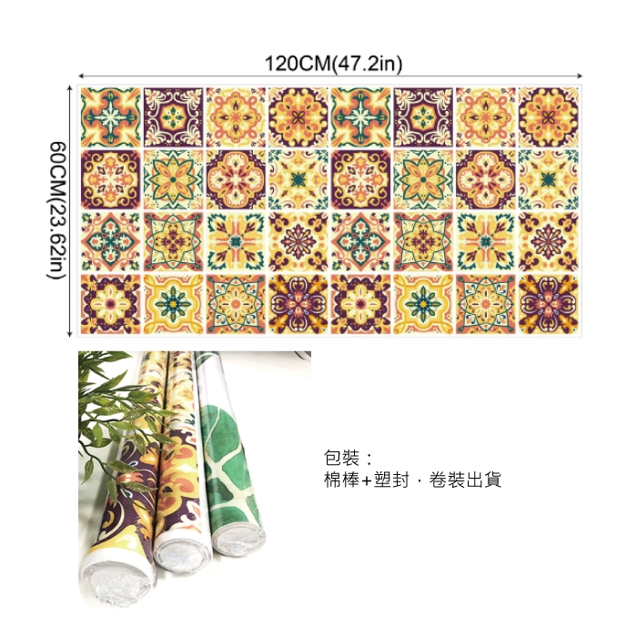 品名:【生活良品】花磚牆貼壁貼地板貼紙 摩洛哥風格120x60cm 卷裝(防水即撕即貼)