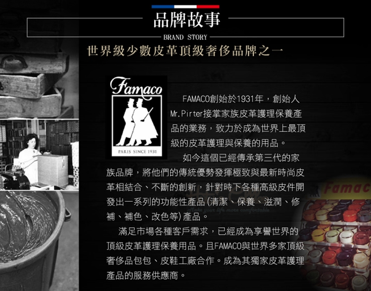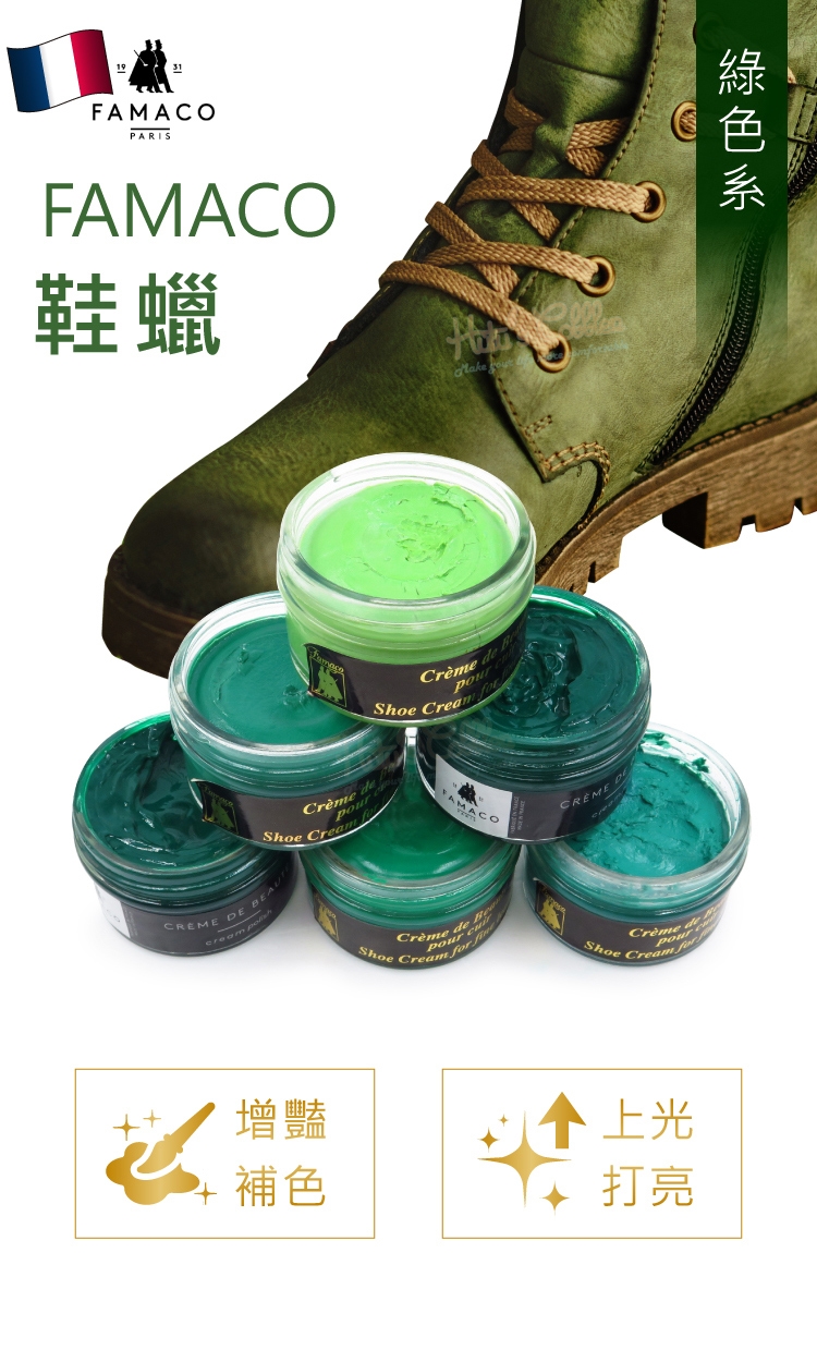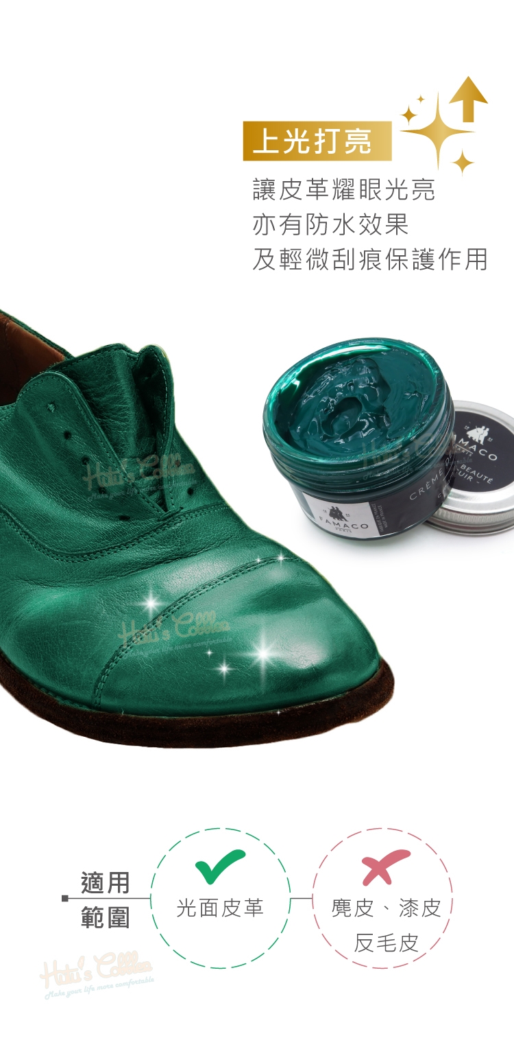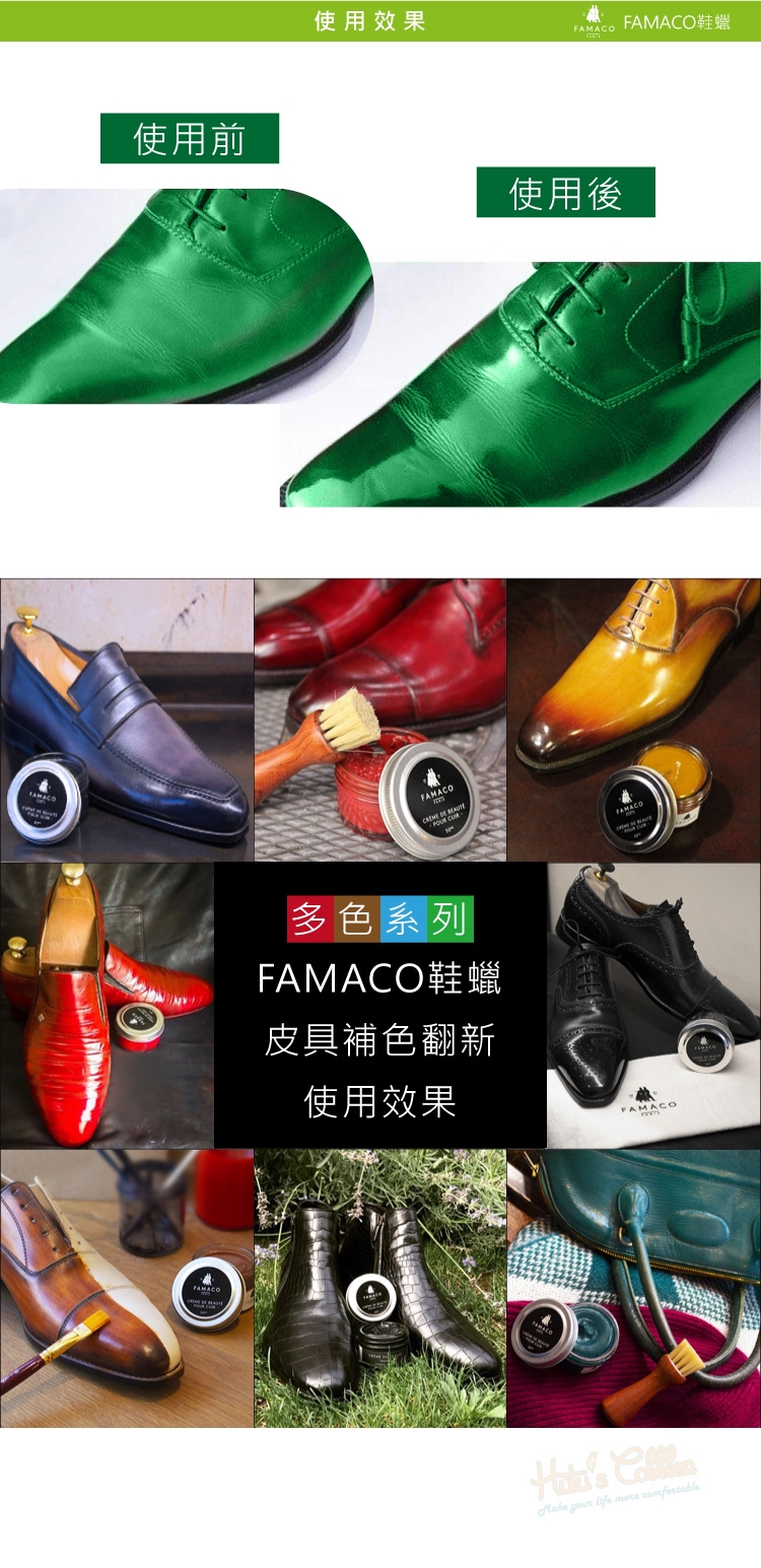 FAMACO鞋蠟能帶給皮革光澤度,提供一點水氣隔絕保護作用