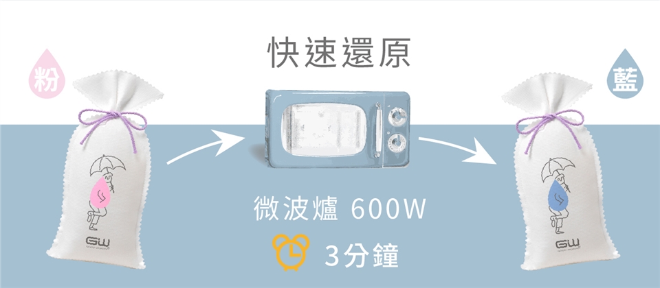 ‧除濕袋請勿自行添加精油或除臭劑,以免微波還原時造成商商品損害。