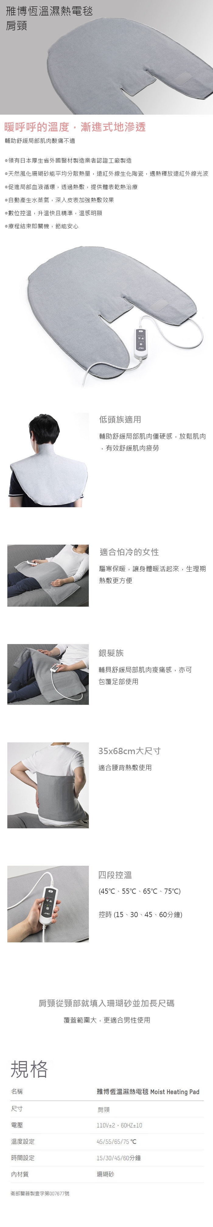 品名:雃博 恆溫濕熱電毯 熱敷墊肩頸 (20x26吋 電熱毯)
