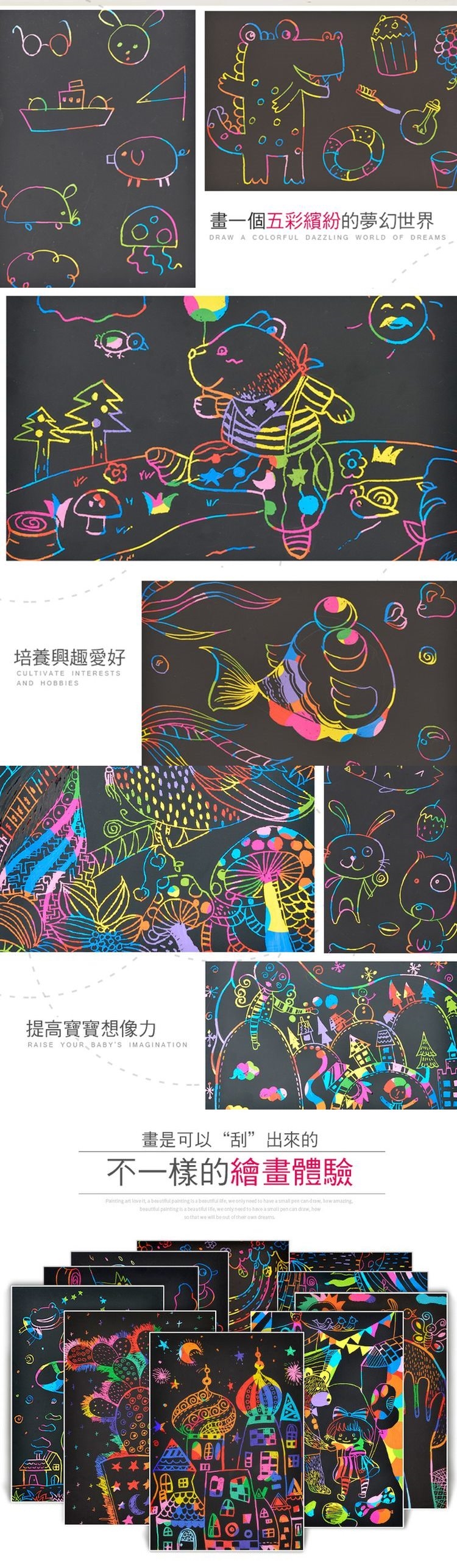 DIY神奇魔幻藝術刮刮畫,讓孩子愛上畫畫,發揮無限創意和想像力!新一款 DIY 畫系列,畫可以用勾的畫出來,完成的作品可裱起來成為框畫或當作書籤紙卡等等,天馬行空的任意彩繪,快來激發孩子的想像力!