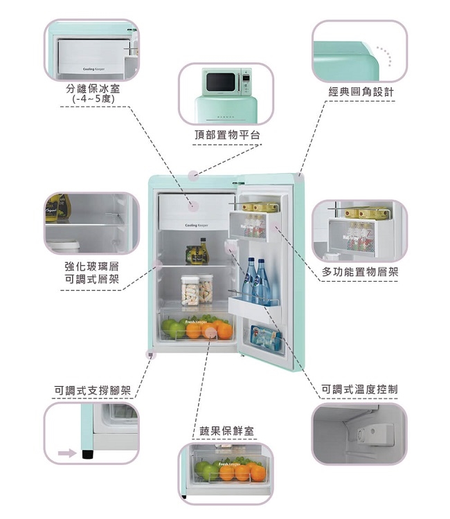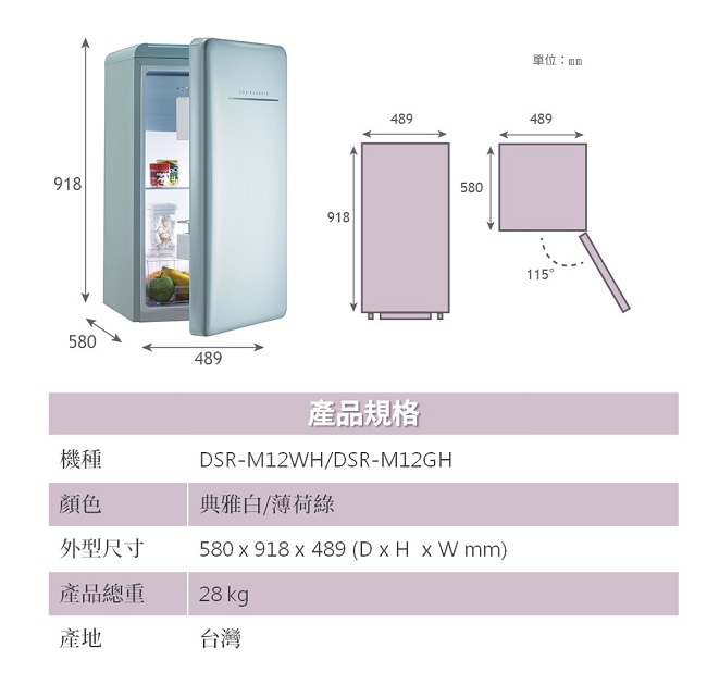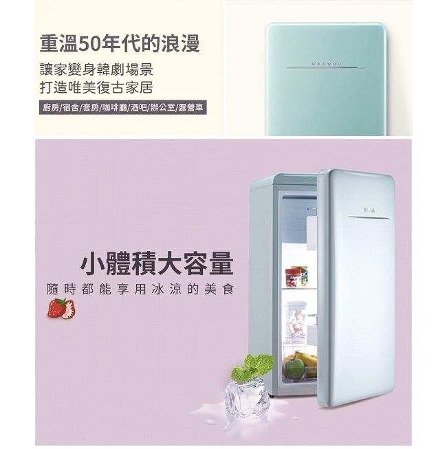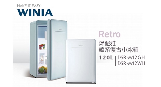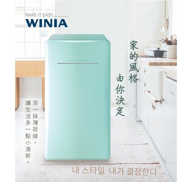 【WINIA煒伲雅】韓系復古式120L定頻單門網美冰箱 DSR-M12GH 薄荷綠