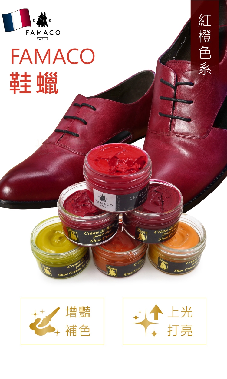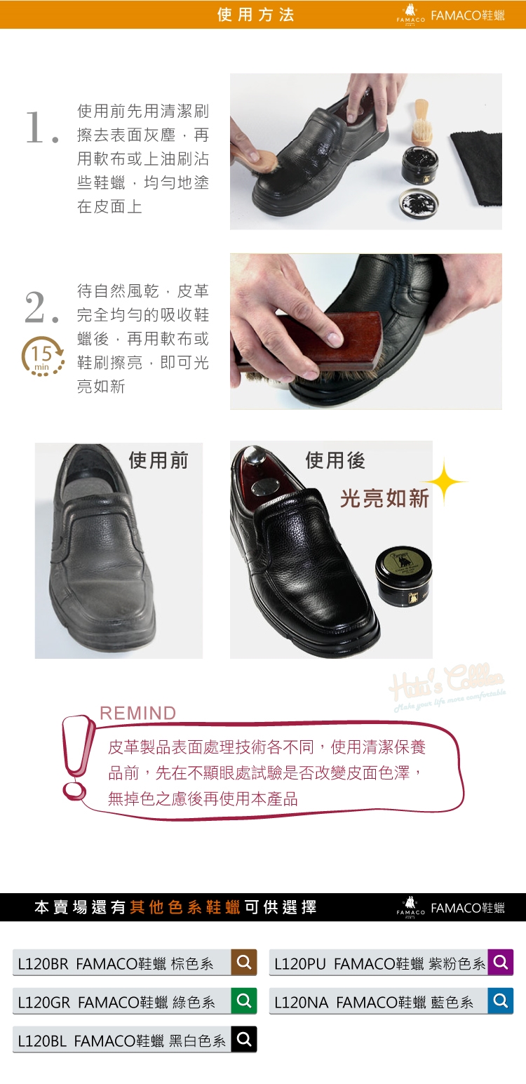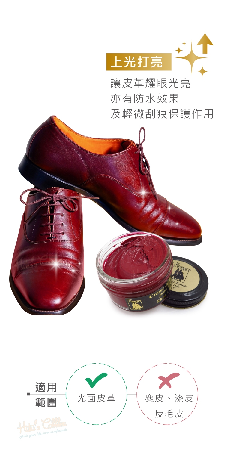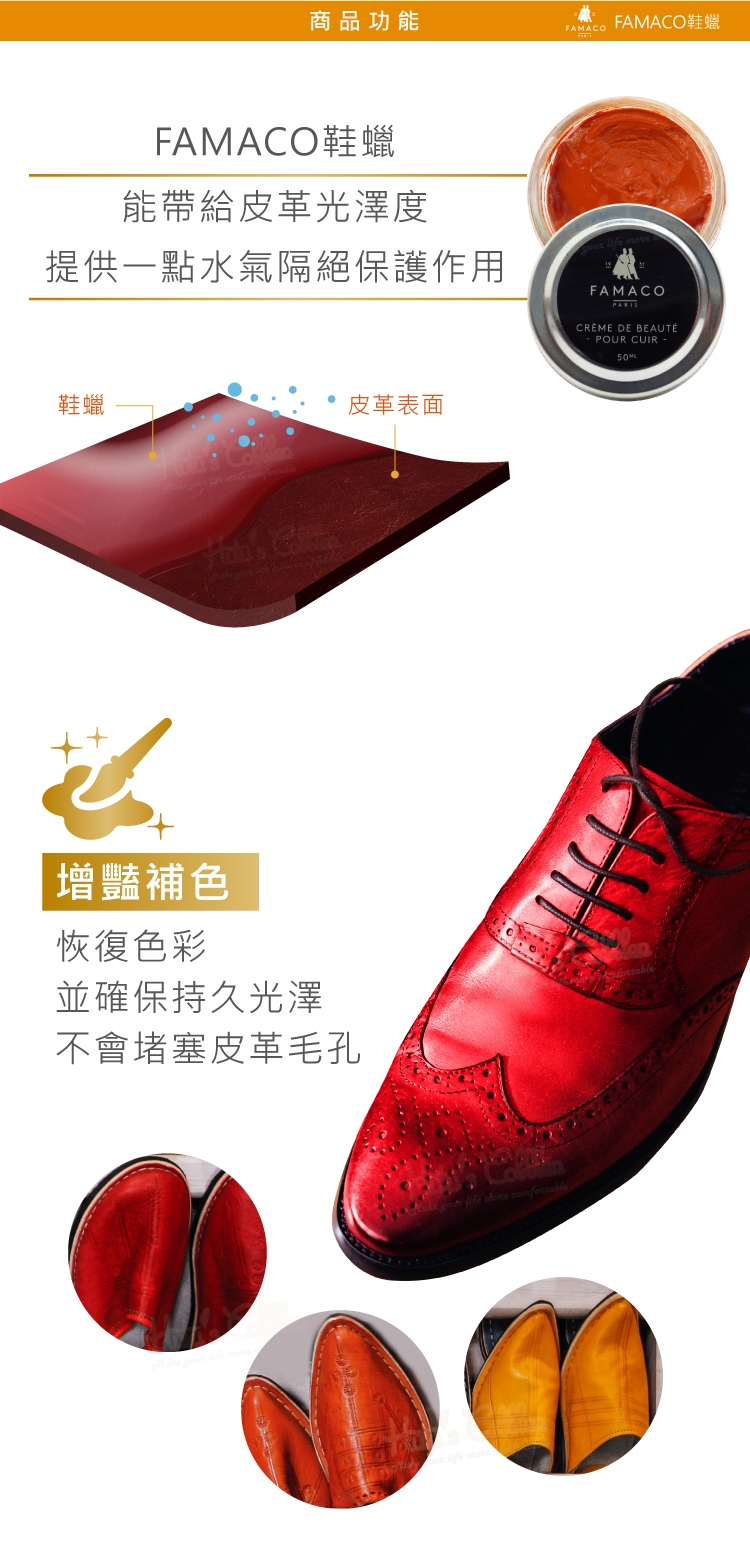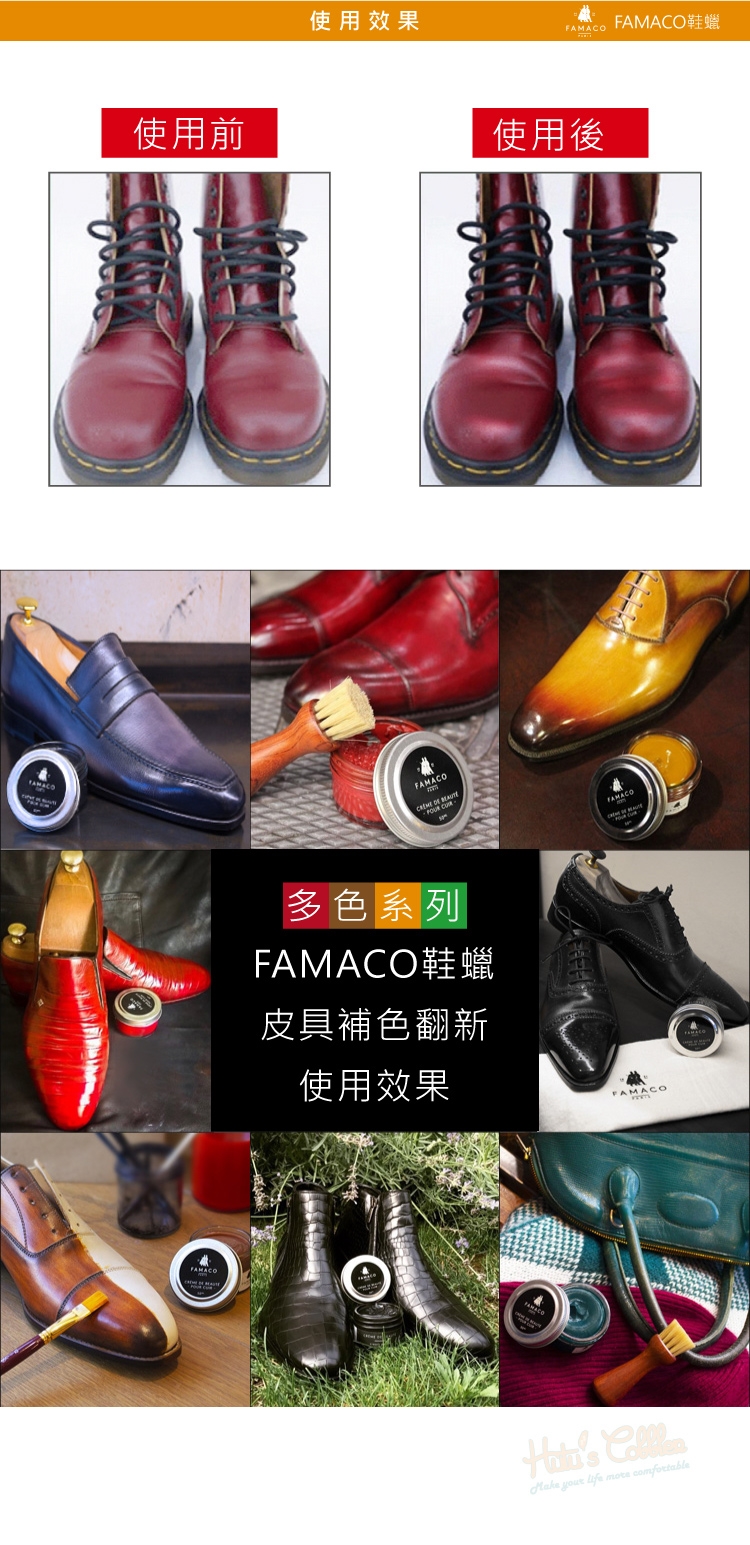 FAMACO鞋蠟能帶給皮革光澤度,提供一點水氣隔絕保護作用