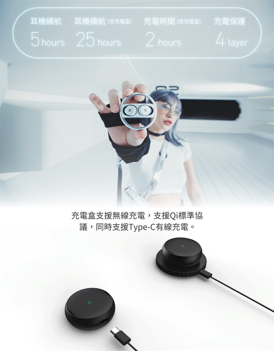 搭配充電盒使用更可以維持高達 25小時的使用時間