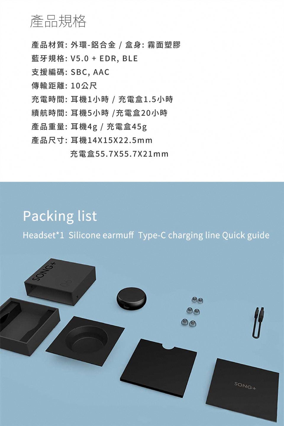 單邊耳機僅重 4 克,入耳式設計,完美貼合不易掉落