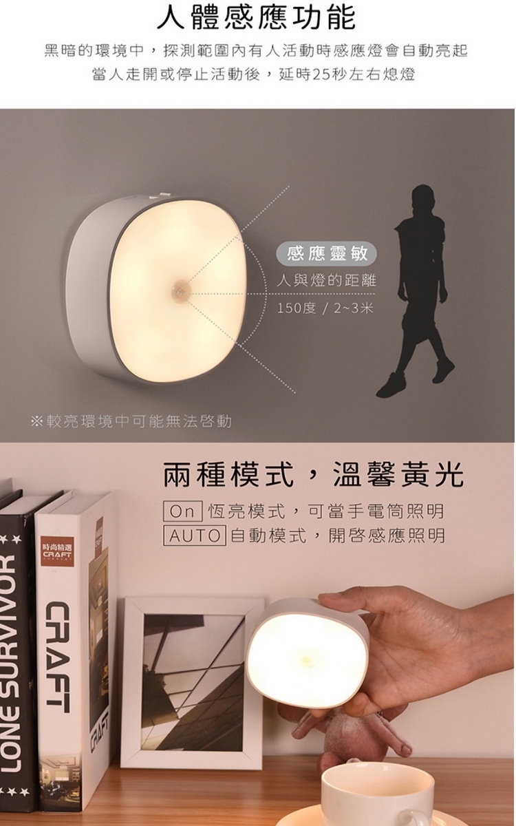 ■人體感應光控:150度廣角、3公尺距離,智能節電。