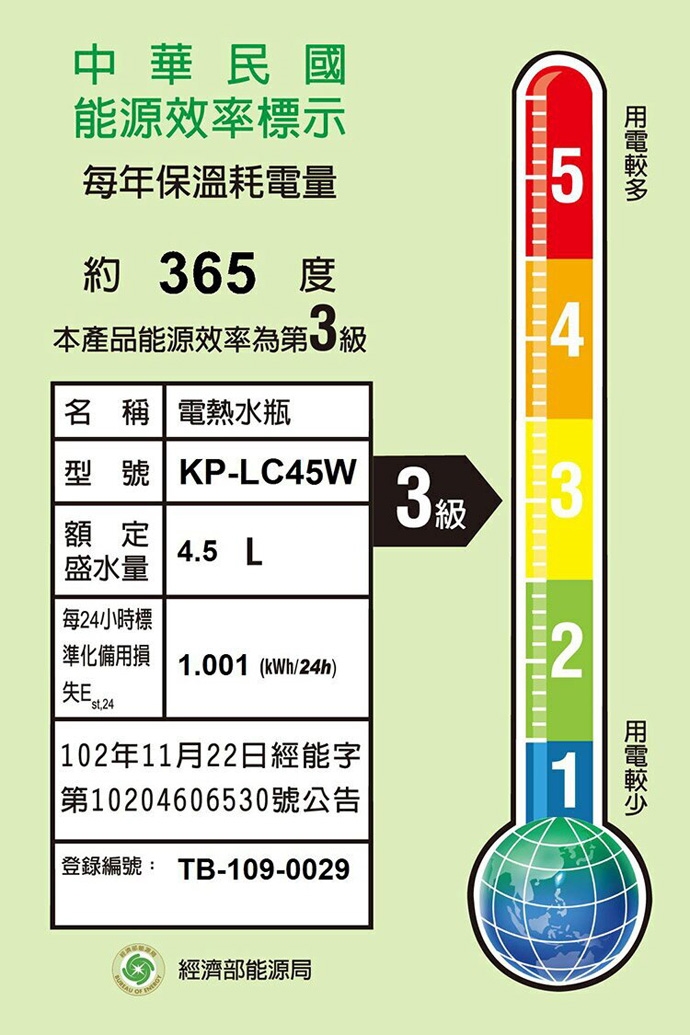 聲寶 4.5L不鏽鋼熱水瓶 KP-LC45W