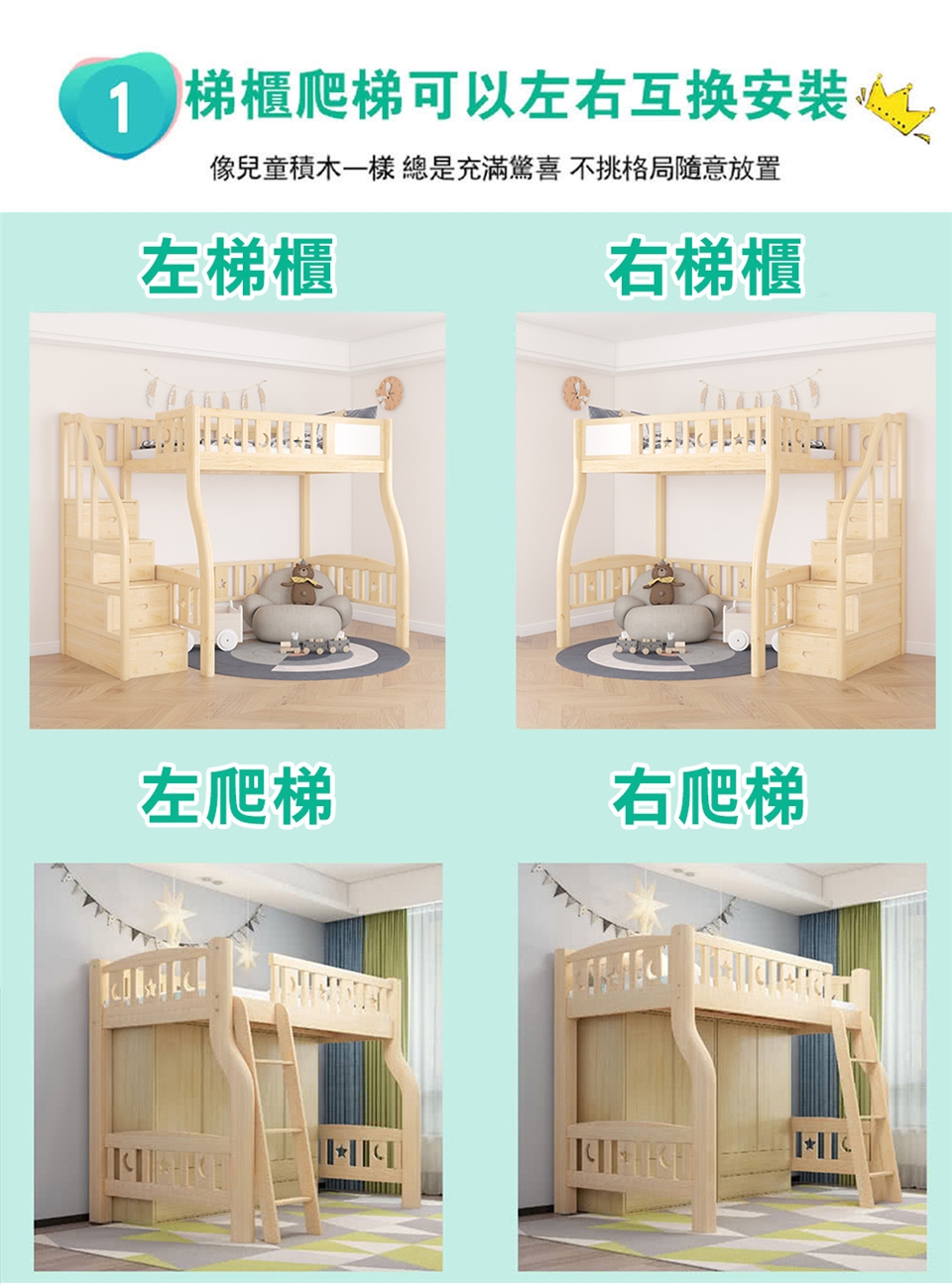安全可靠:採用歐盟最高兒童家具專用木材等級SF級製成,堅固耐用,無毒無害,給孩子一個安全健康的睡眠環境。
