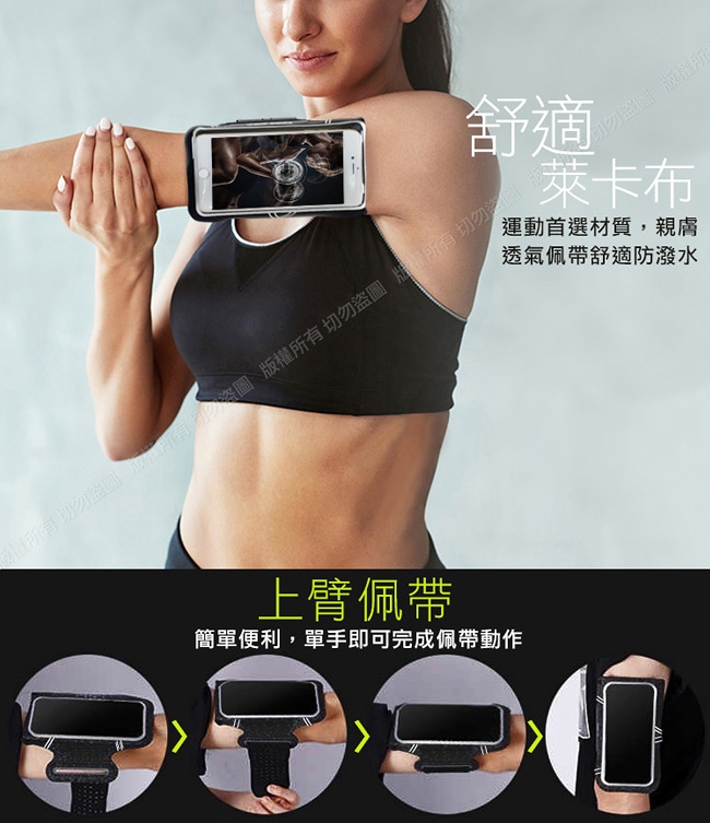 -由於臂套需要較緊密固定手機,所以若6吋的手機裝殼太大的話,建議您改用裸機放入臂套中。
