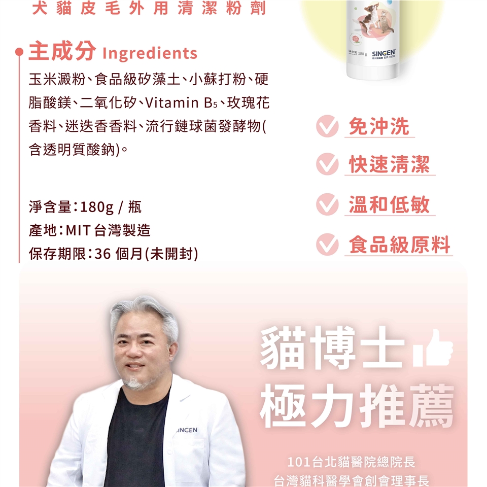 SINGEN 信元發育寶 犬貓草本乾洗粉-180g/罐 狗狗乾洗粉 貓咪乾洗粉