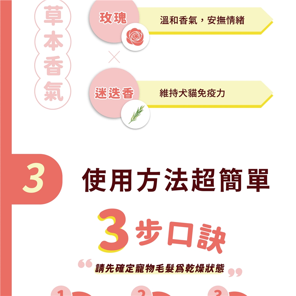 朵周圍。以手或乾毛巾輕輕搓揉,再用梳子梳開,最後用乾毛巾將寵物身上乾洗