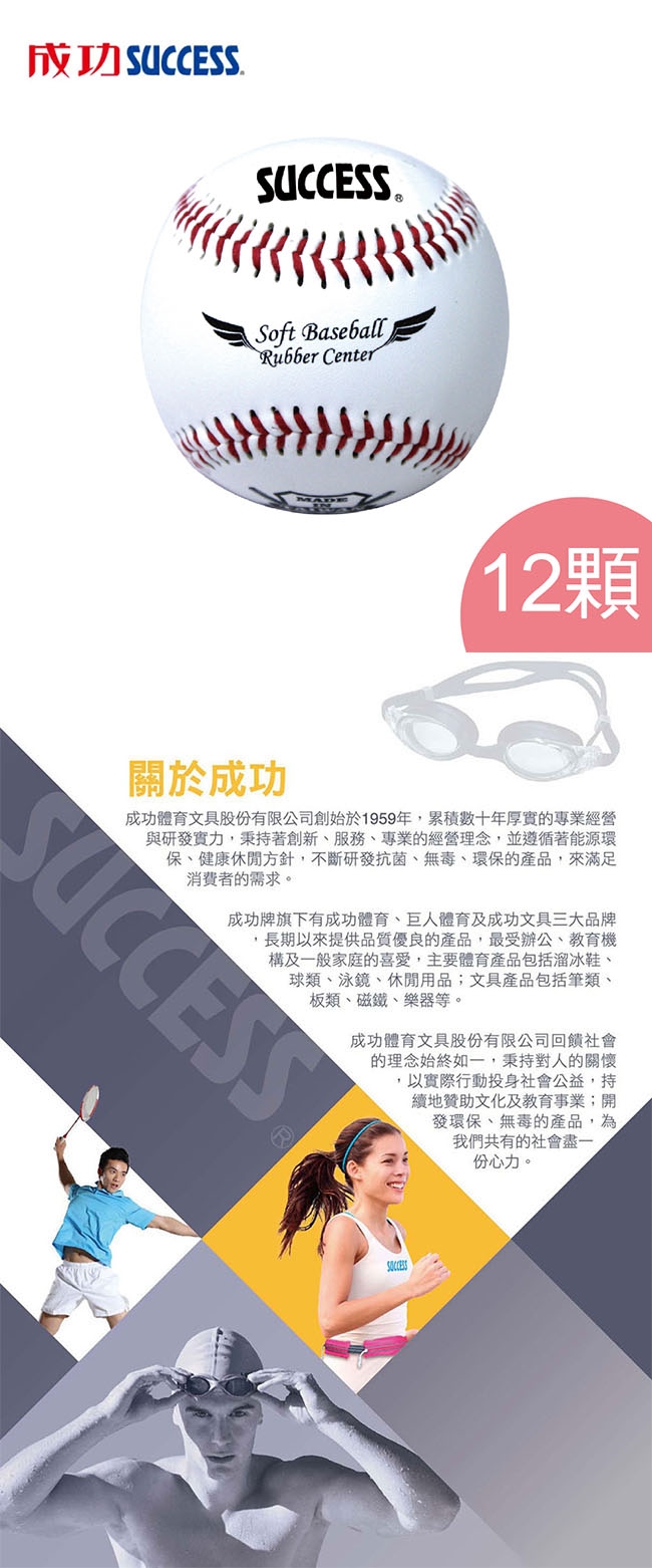 成功SUCCESS 安全軟式縫線棒球(12顆)S4102台灣製