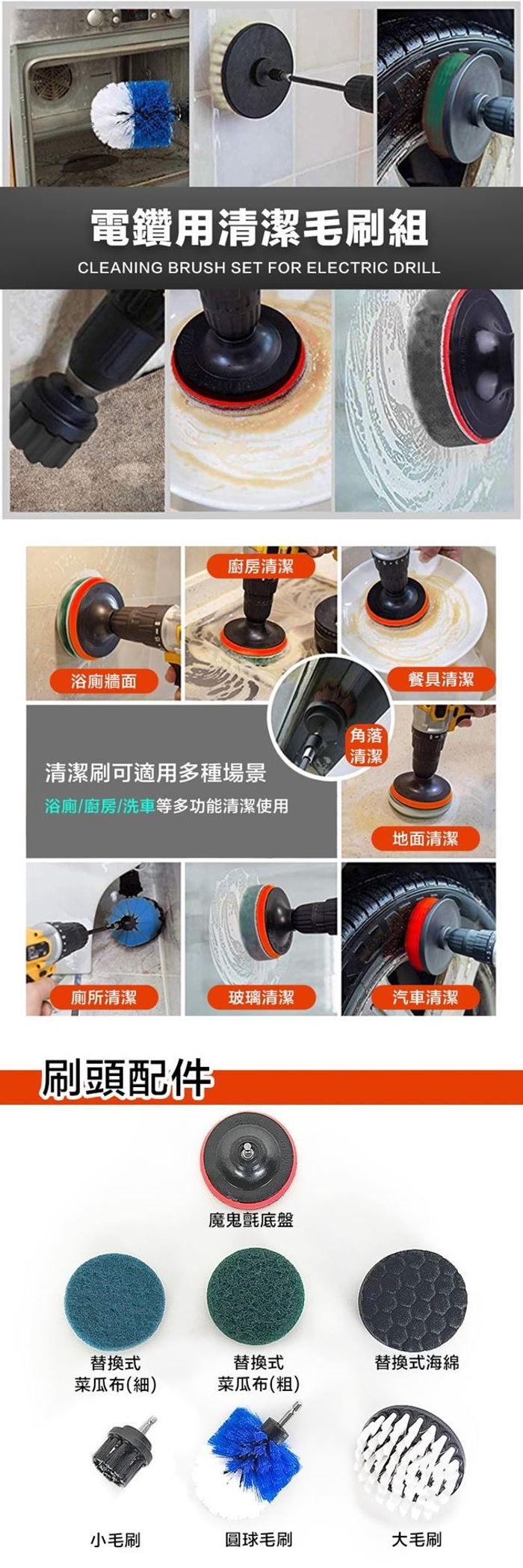 品名:通用款電鑽7件清潔刷組