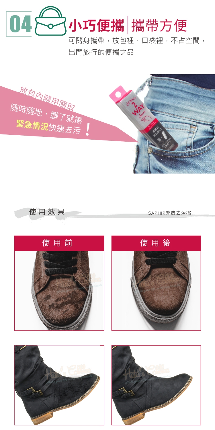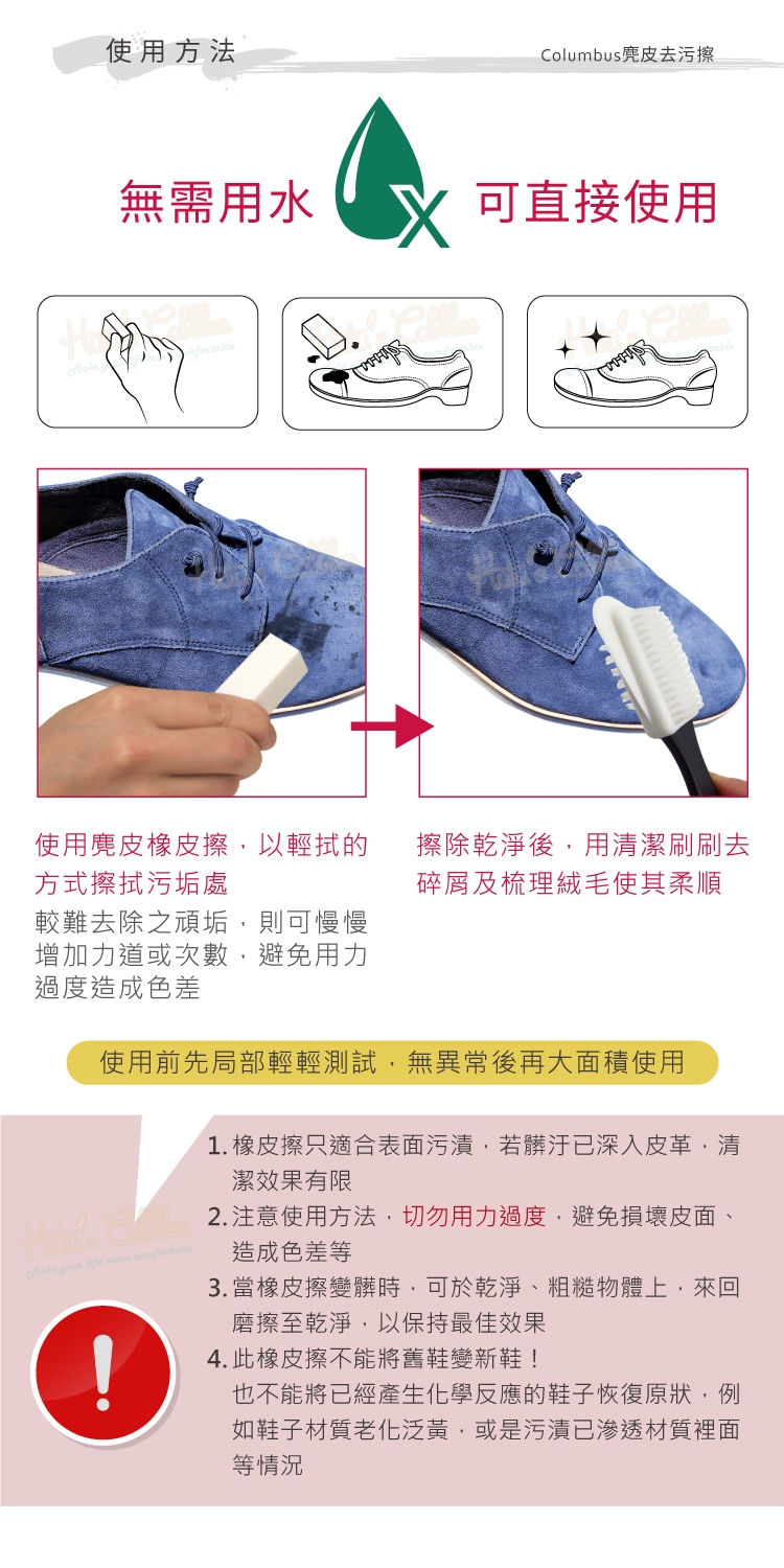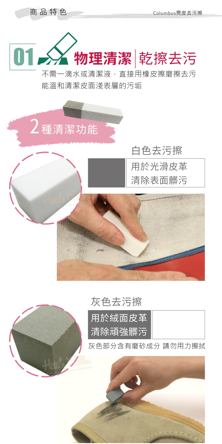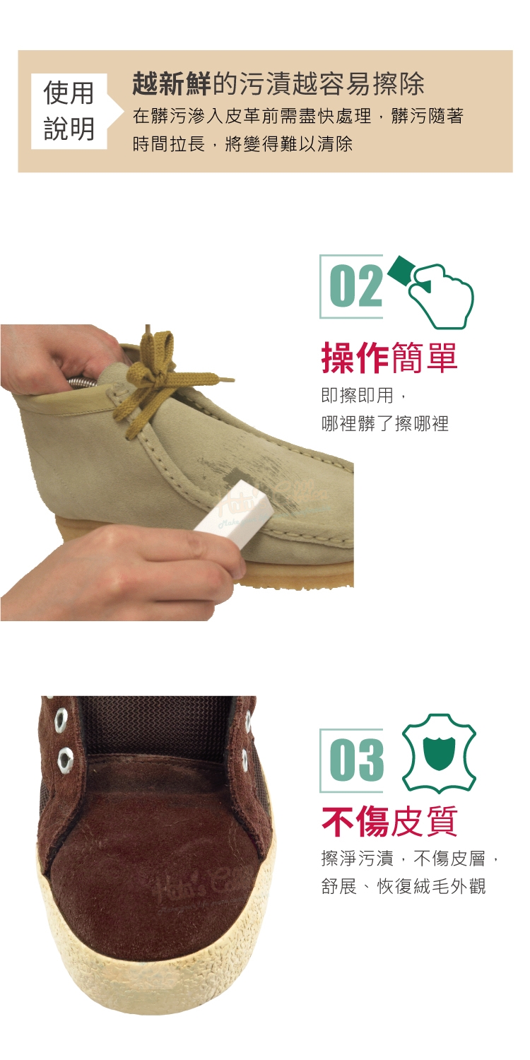 1.橡皮擦只適合表面污漬,若髒汙已深入皮革,清潔效果有限