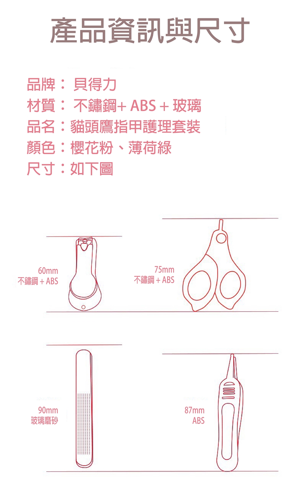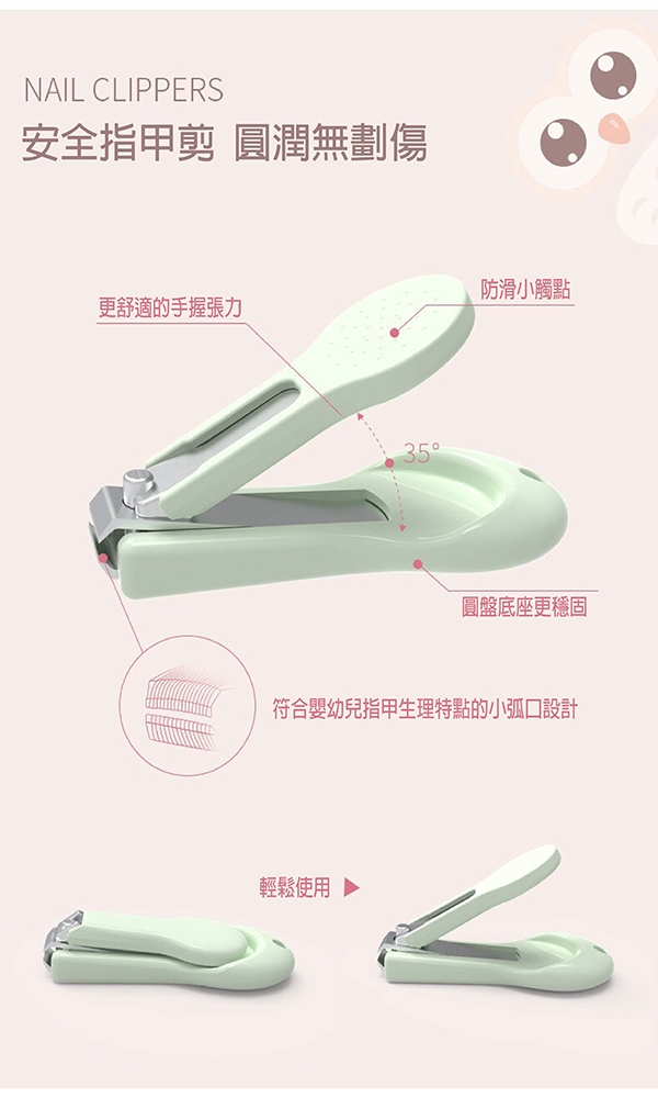修剪指甲看似平常,但當面對小寶貝時,總會好害怕弄傷孩子的小手,因此擁有專用套組非常重要!!!