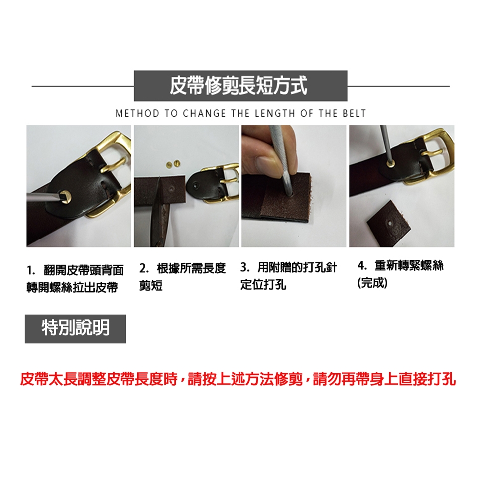 2.附贈皮帶長度調整打孔針依個人腰圍裁剪皮帶長度