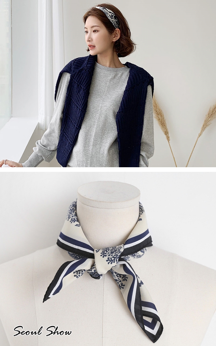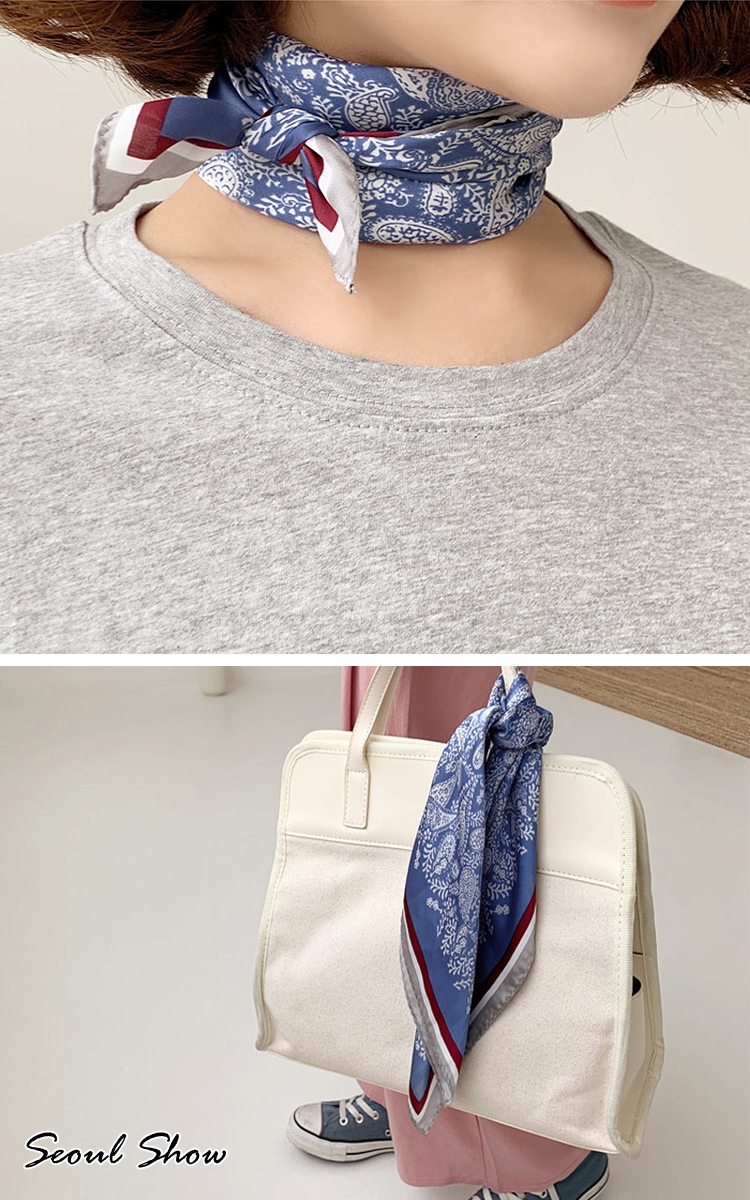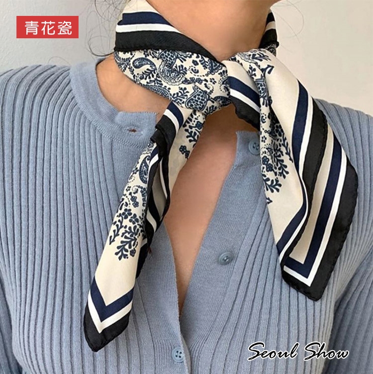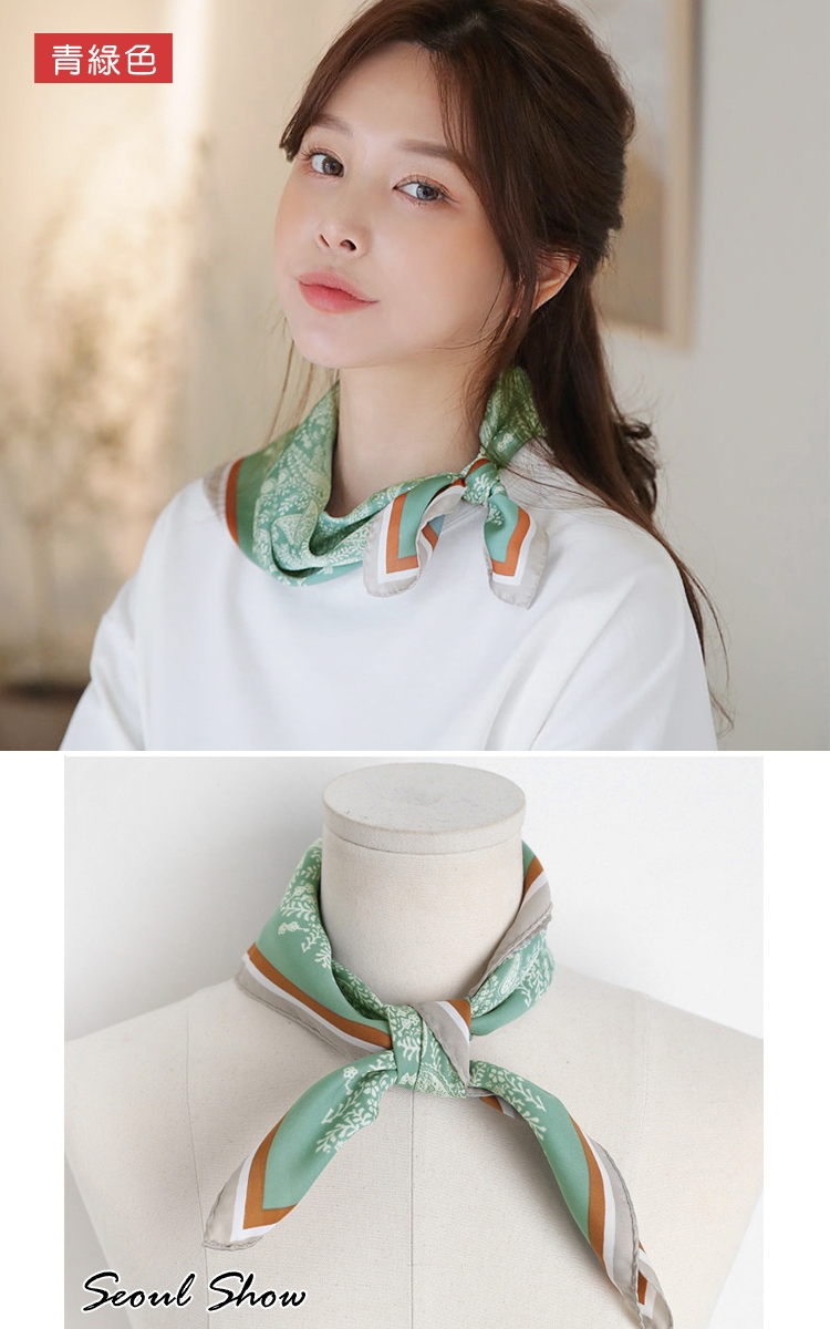 seoul show首爾秀 腰果花卉百搭頭巾仿蠶絲方領巾雪紡絲巾