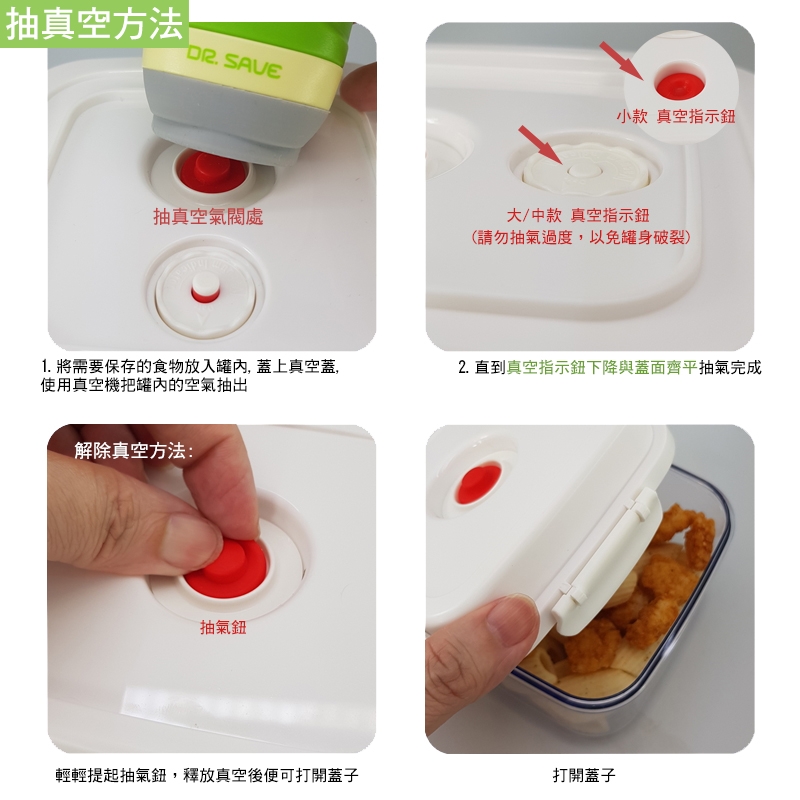 裝粉類/液體時不要傾倒,保護氣孔不被阻塞,四邊矽膠條不要有雜質,避免氣密不全導致漏氣
