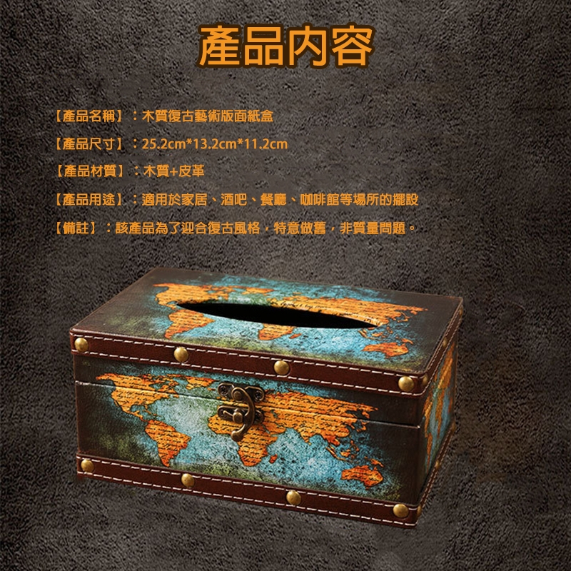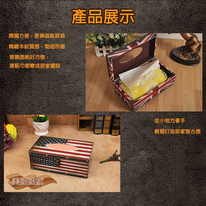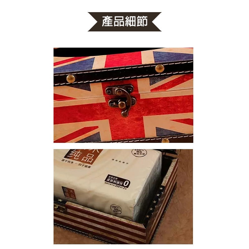 打開後將衛生紙包放置進去,即可以使用復古面紙盒