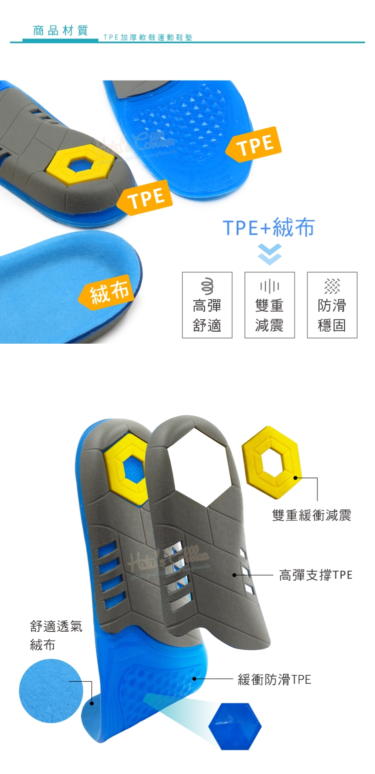 TPE+絨布,高彈舒適、雙重減震、防滑穩固