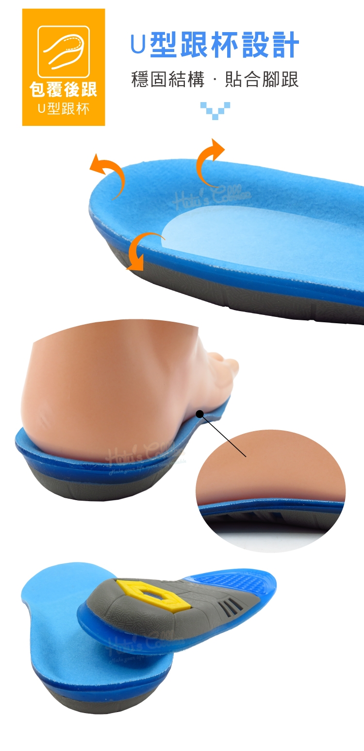 2.U型跟杯:U型跟杯設計,穩固結構,貼合腳跟