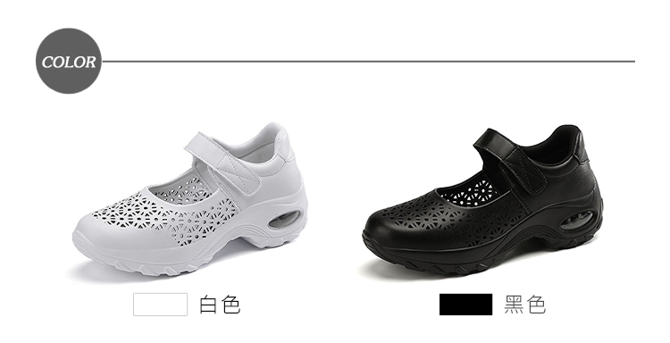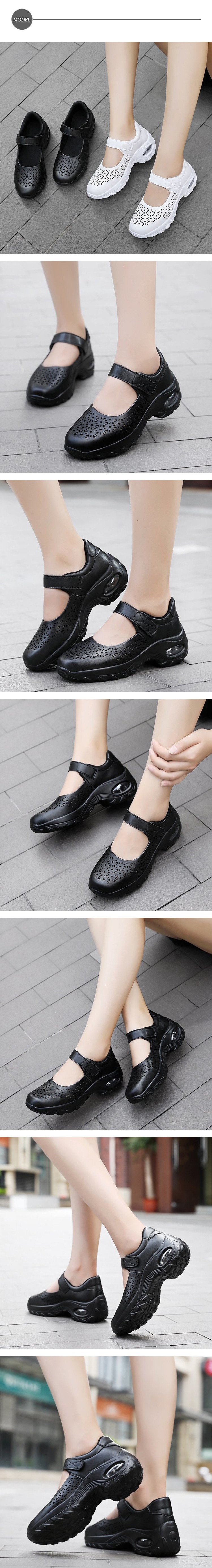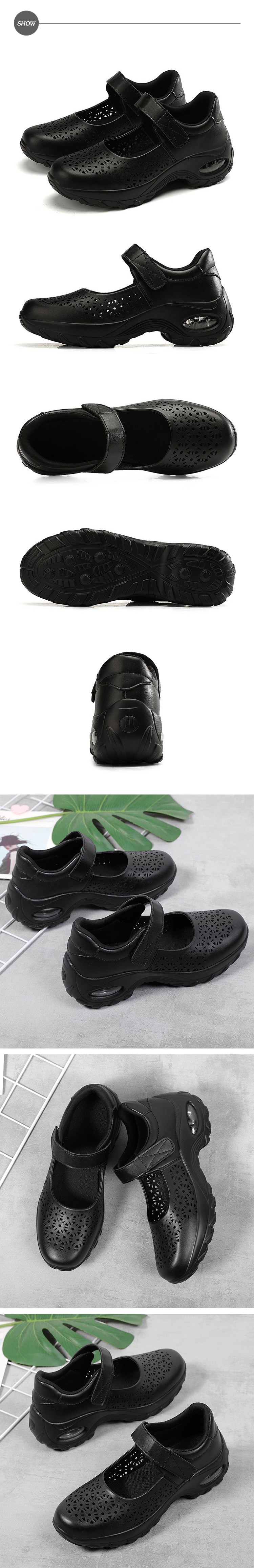 【HAPPY WALK】質感皮革縷空花樣舒適彈力氣墊娃娃休閒鞋 黑