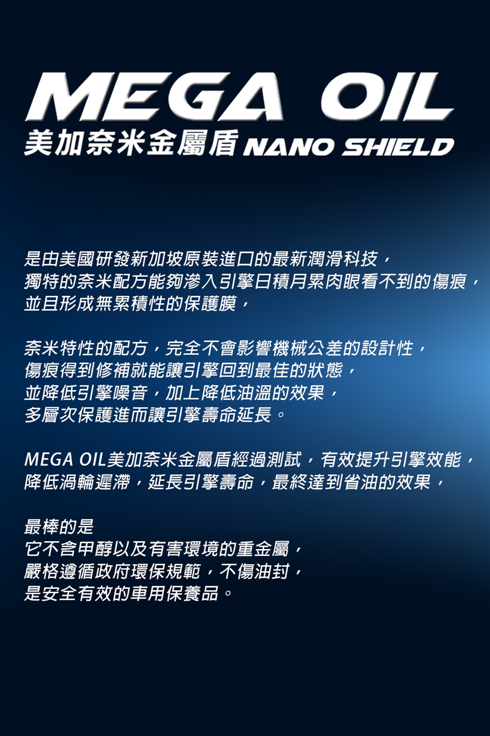 2.更新機油後進行添加MEGA OIL。