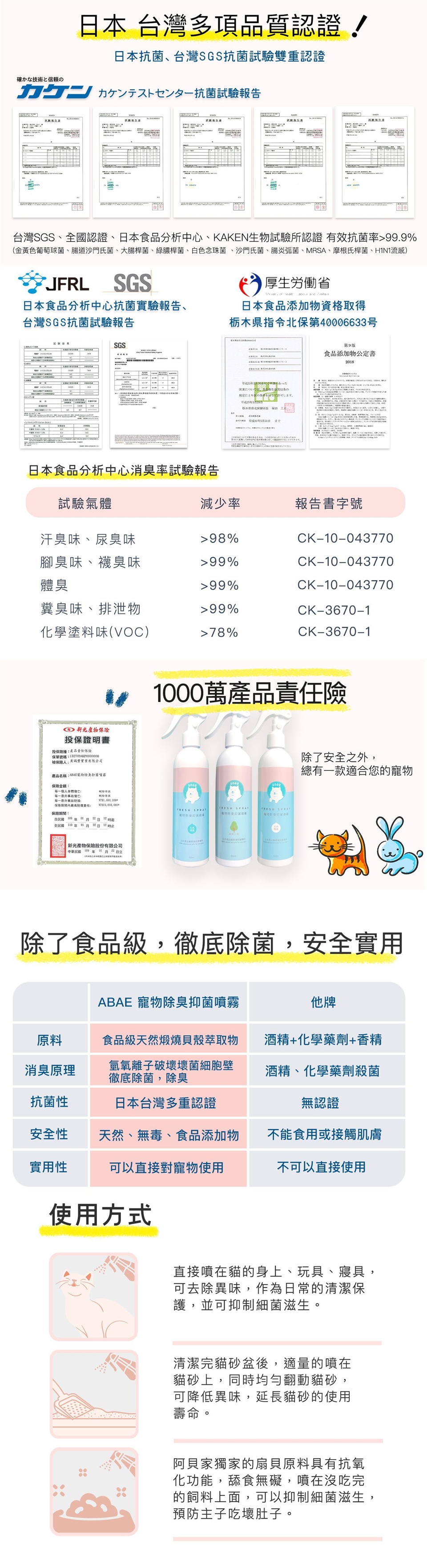 阿貝家獨特的扇貝原料具有抗氧化功能,舔食無礙,噴在沒吃完的飼料上面,可抑制細菌滋生預防主子吃壞肚子。