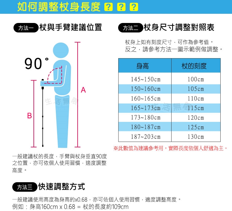 3.若使用中有斷裂破損變形或手杖本身有大的瑕疵時,請勿使用。