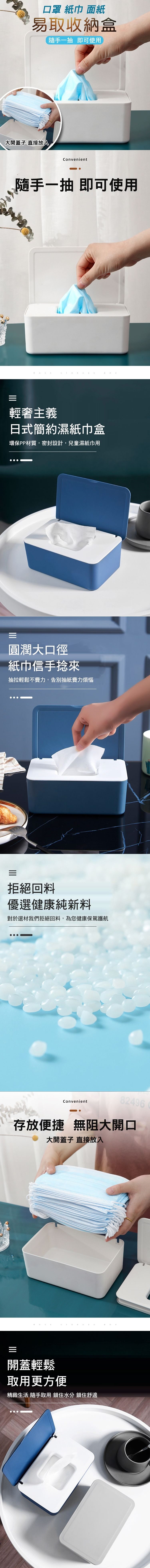 口罩紙巾面紙易取收納盒,一翻即抽,防塵又衛生,加大開口設計,便利好抽取,加密密封條,衛生再加分,日式簡約四色,自由配色,分類好管理,多物運用,衛生紙、濕紙巾、拋棄式手套,皆可衛生收納。