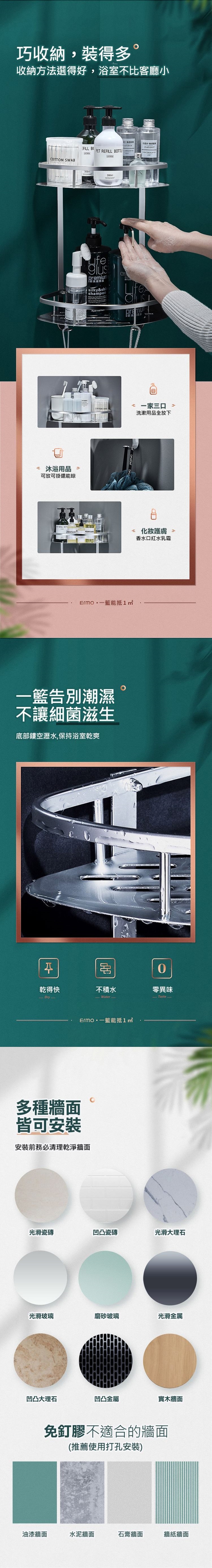 浴室收納好幫手,利用廚房或浴室牆角免釘壁掛,讓你的空間翻倍!